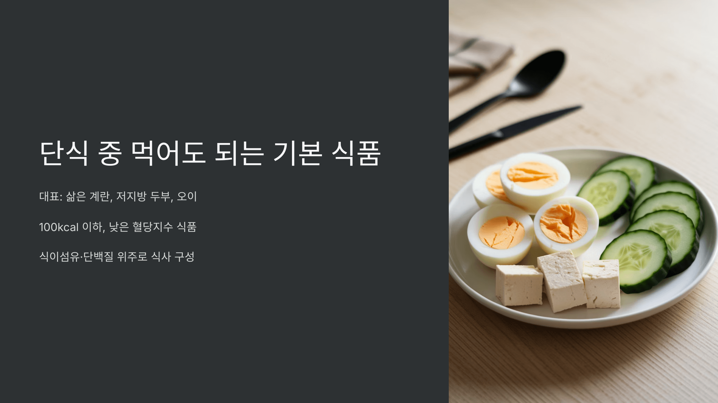 단식 중이라고 해서 무조건 아무것도 먹지 않아야 한다는 건 아니에요. 일부 식품은 혈당에 거의 영향을 주지 않아서 공복 상태를 유지할 수 있답니다. 대표적으로 아보카도, 오이, 셀러리 같은 채소들이 있어요. 🥒