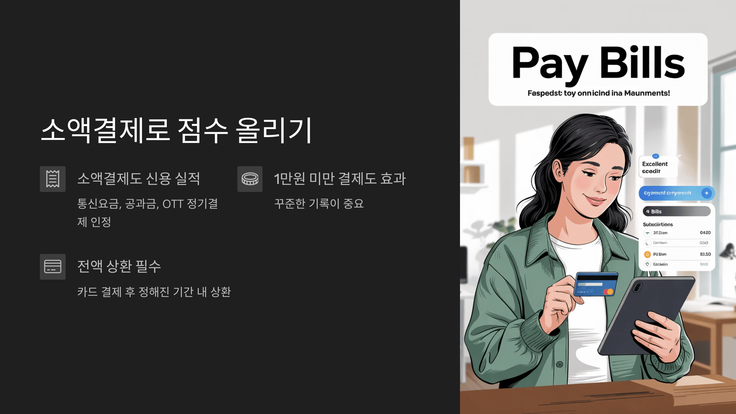 신용점수를 올리는 가장 쉬운 방법 중 하나가 바로 ‘소액결제 습관 들이기’예요. 거창한 방법이 아니어도, 매달 카드로 1~2만 원씩만 결제하고 성실하게 갚기만 해도 신용점수에 긍정적인 영향을 준답니다. 🙆♀️