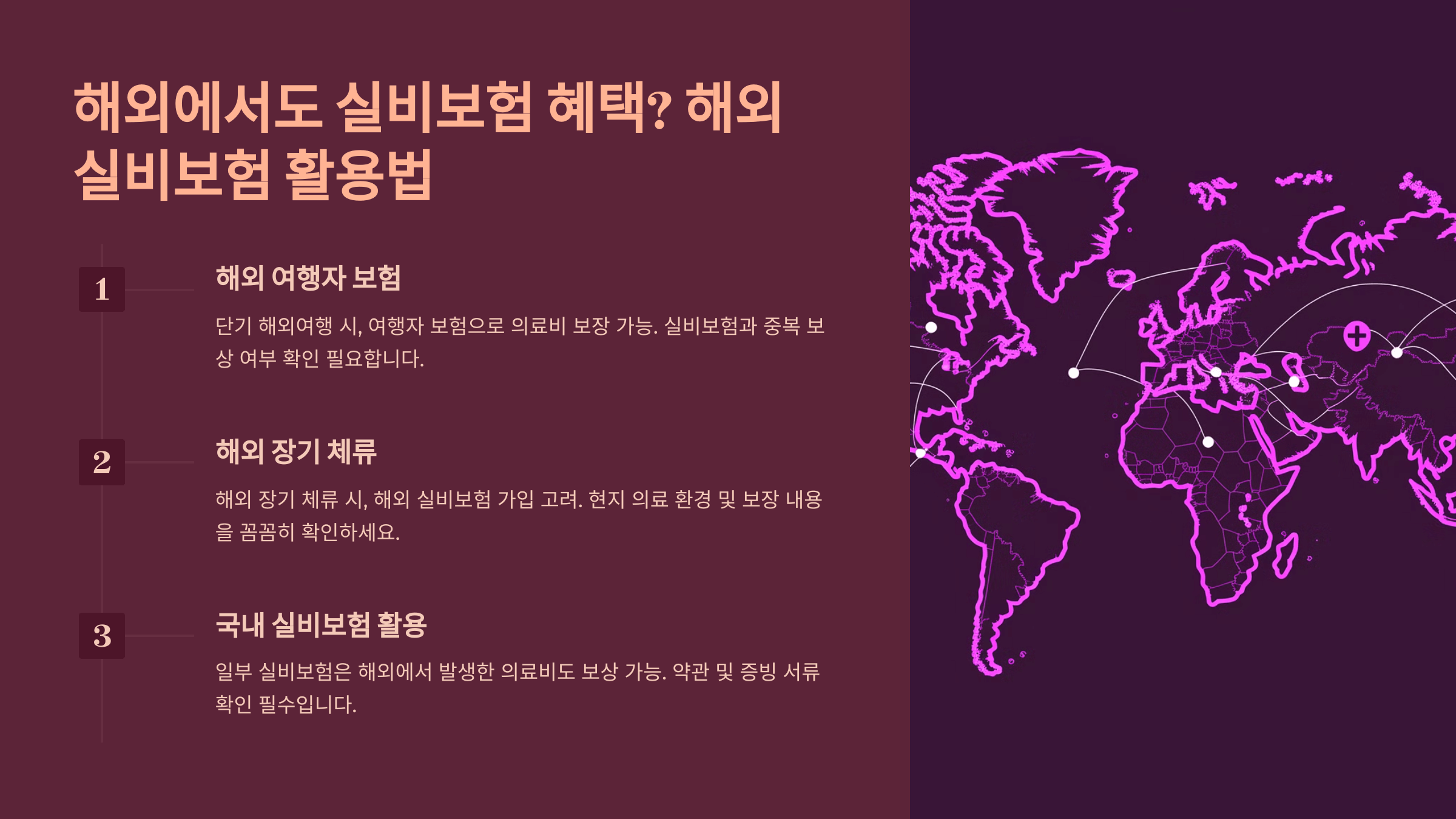 결론부터 말하면, 실비보험은 해외에서 사용할 수 없어요.