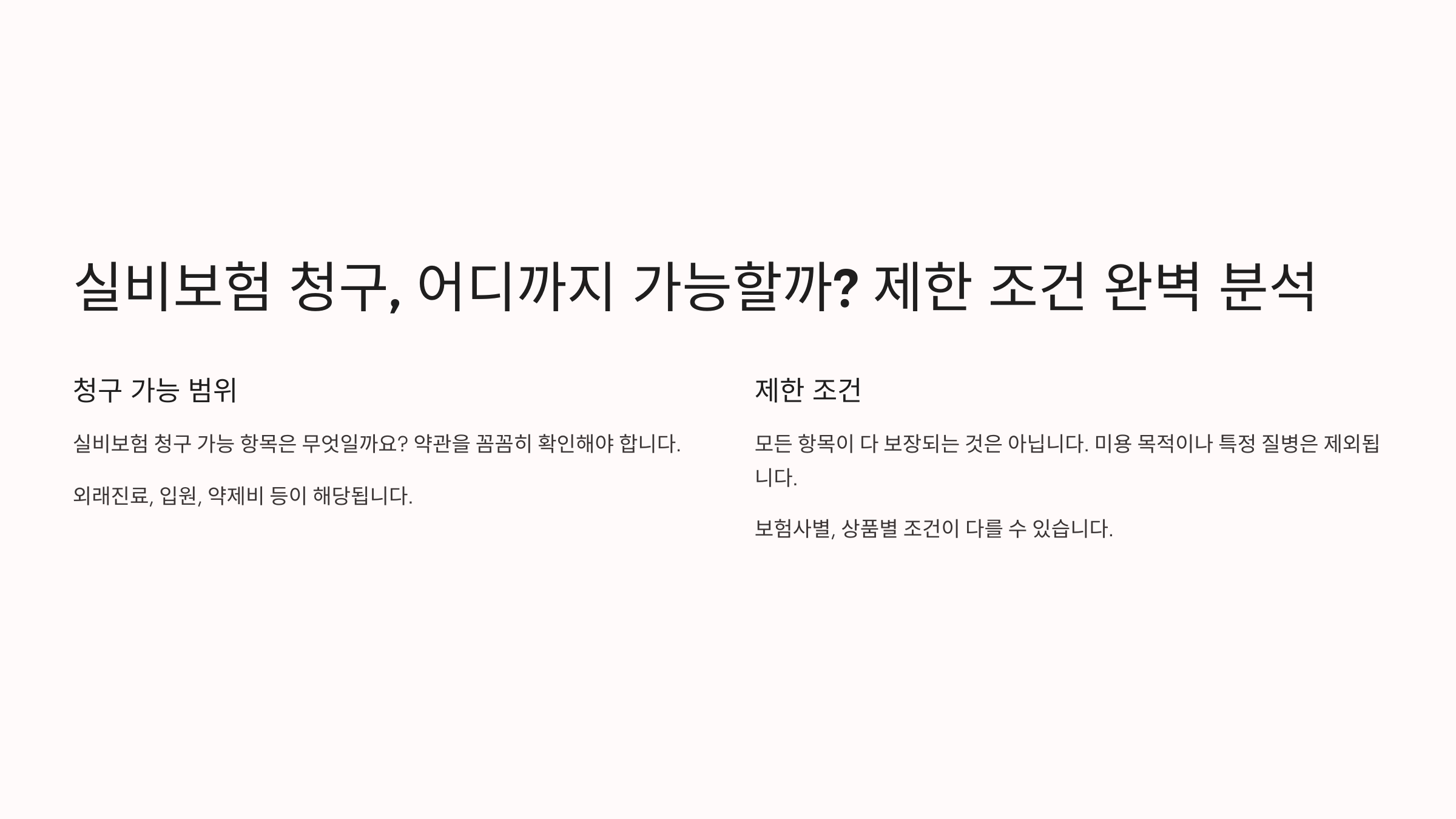 실비보험은 병원비를 보장해 주는 보험이지만, 모든 치료비를 무제한으로 보장하는 것은 아니에요. 보험 청구에는 몇 가지 제한 조건이 있기 때문에 미리 확인하는 것이 중요해요. ✅