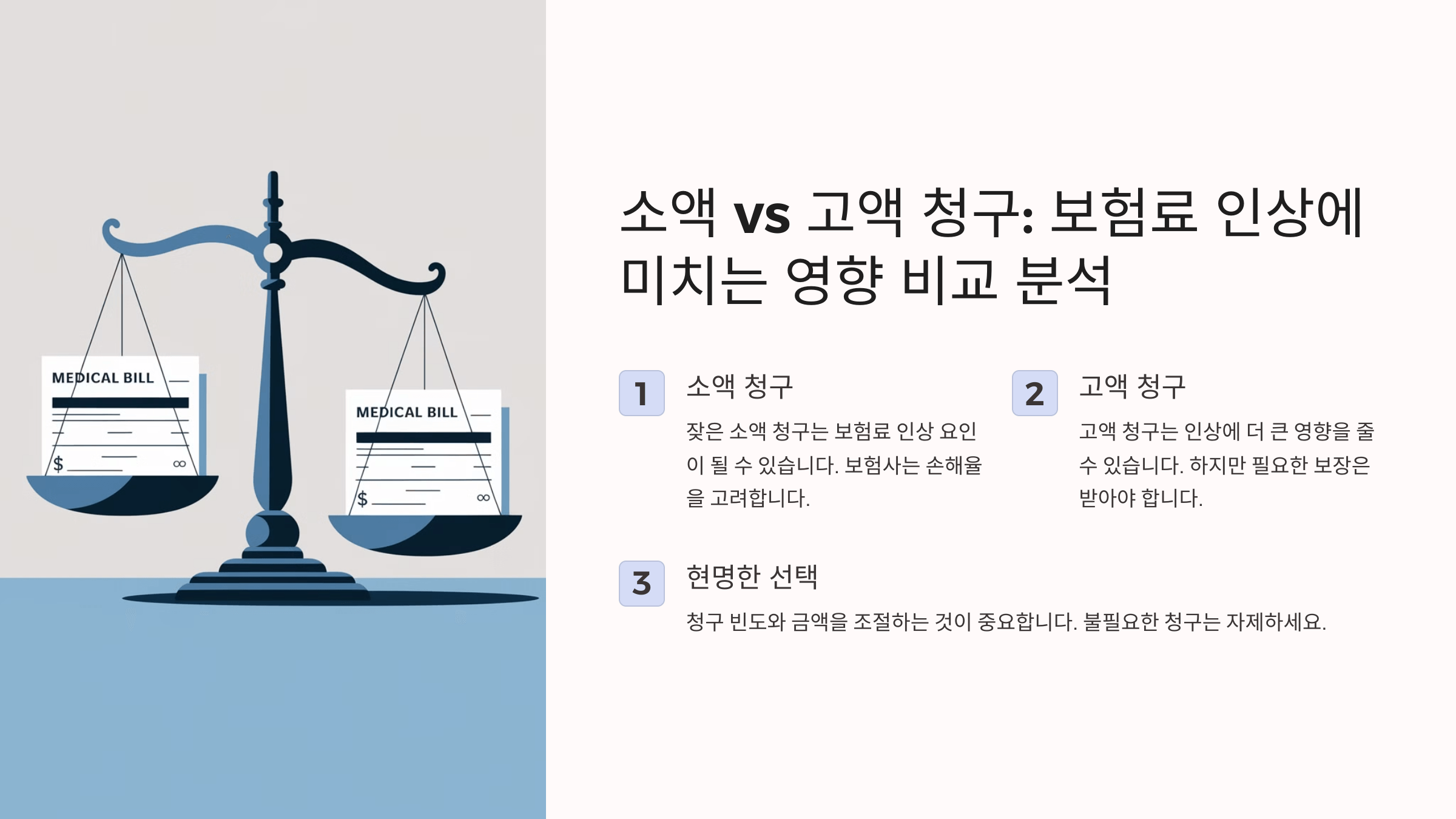 소액 청구는 보험료 인상에 영향을 거의 미치지 않지만, 고액 청구는 갱신 시 보험료가 인상될 가능성이 높아요! 😵💫
