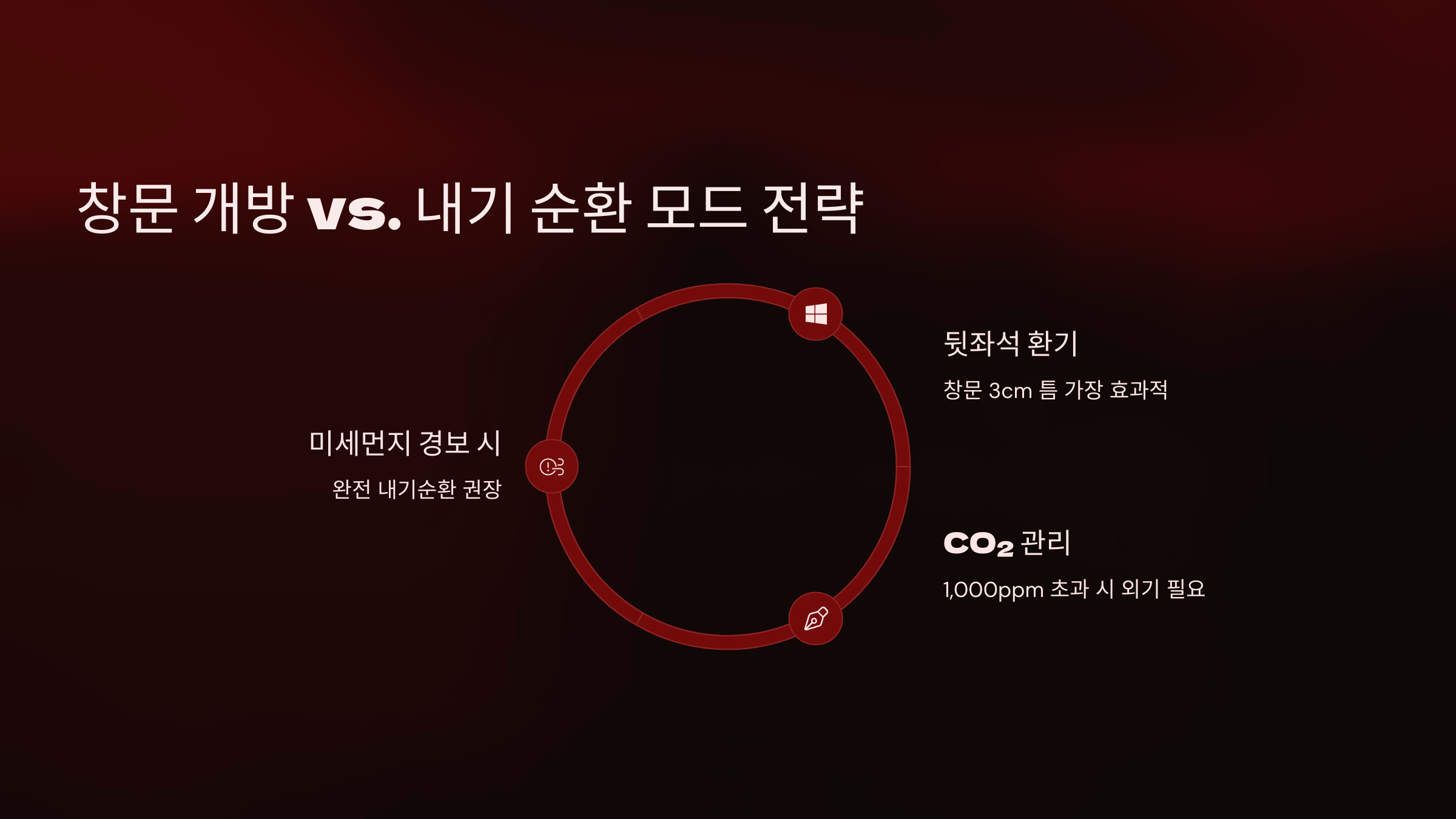 | 미세먼지 농도 높음 | 내기 순환 | 외부 오염 차단 |