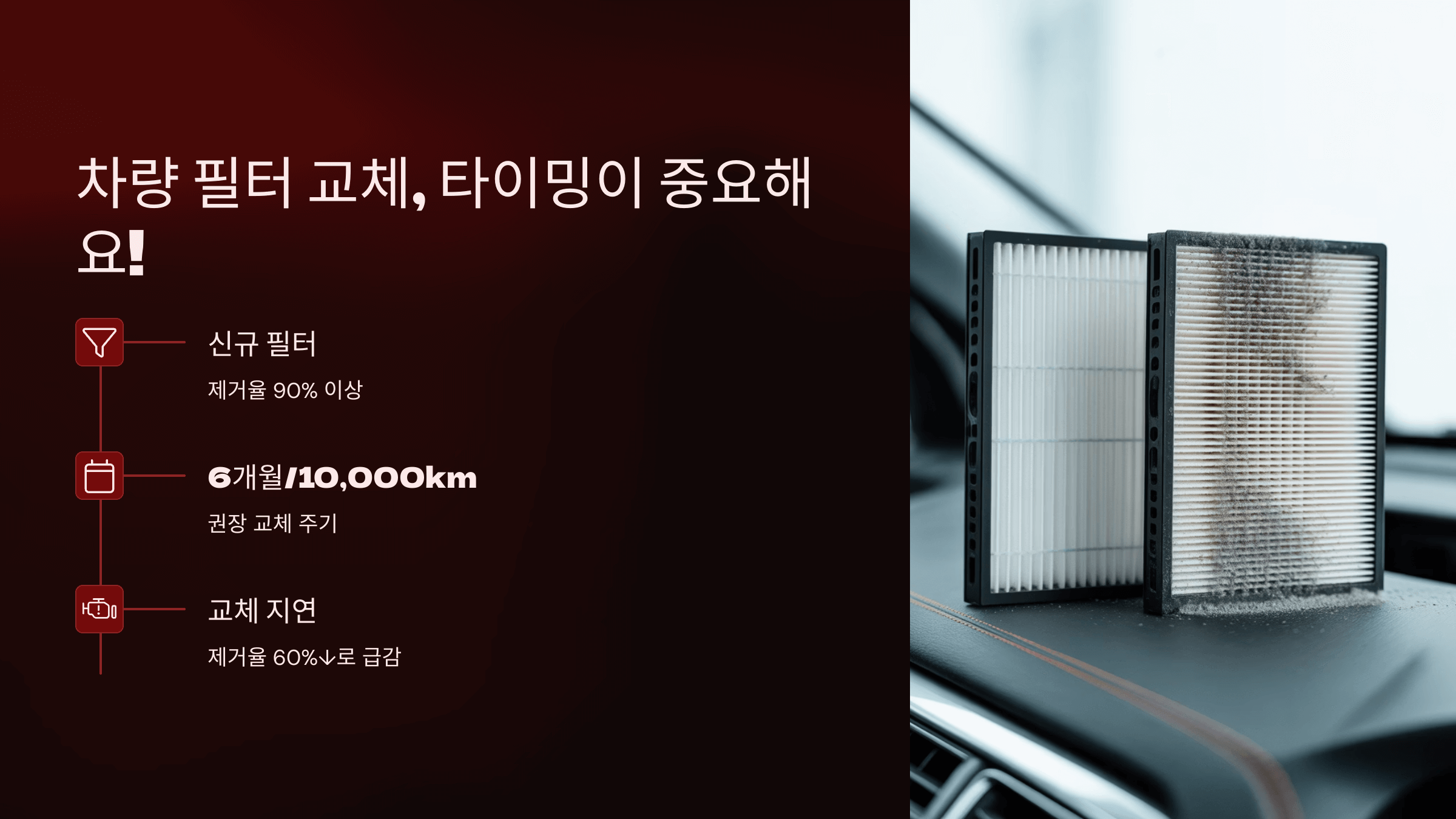 차량 공기질은 단순히 냄새의 문제가 아니라 건강과 직결돼요. 장기적으로는 호흡기 질환이나 알레르기 반응을 유발할 수 있기 때문에, 차량 내 공기 질 관리에 관심을 가지는 게 정말 중요해요.