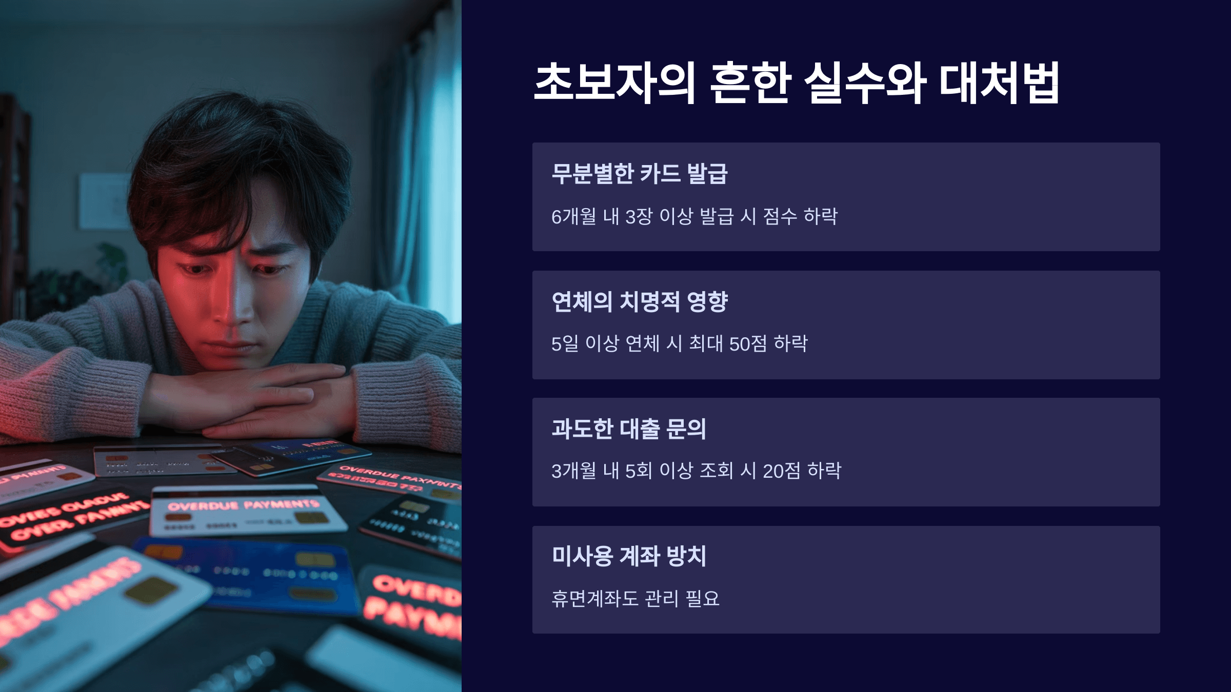 | 신용카드 과다 사용 | 한도 초과·연체로 신용도 하락 |