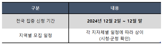전국적으로 일괄 모집 기간은 12월에 집중되지만, 지역별 일정은 다소 차이가 있을 수 있습니다. 따라서 거주하는 지역의 행정복지센터나 시청 공고를 반드시 확인해야 합니다. 기존 참여자는 수행기관에서 연장 신청이 가능하며, 신규 참여자는 신청 시 필요한 서류를 반드시 준비해야 합니다.