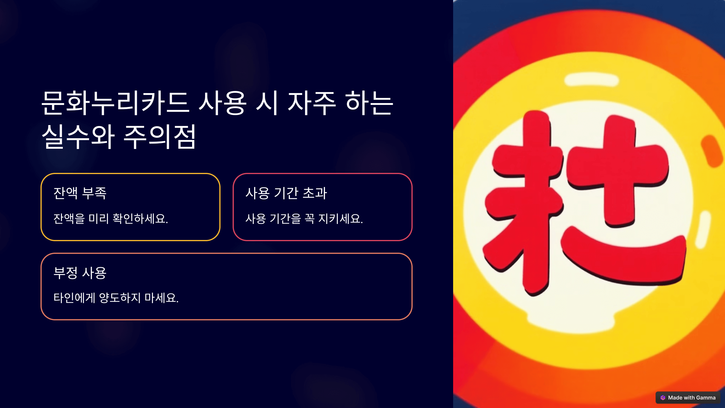 🚨 문화누리카드를 사용할 때 많은 분들이 실수하는 부분이 있어요. 특히 카드 사용 기한을 놓치거나, 사용할 수 없는 곳에서 결제하려는 경우가 많아요!