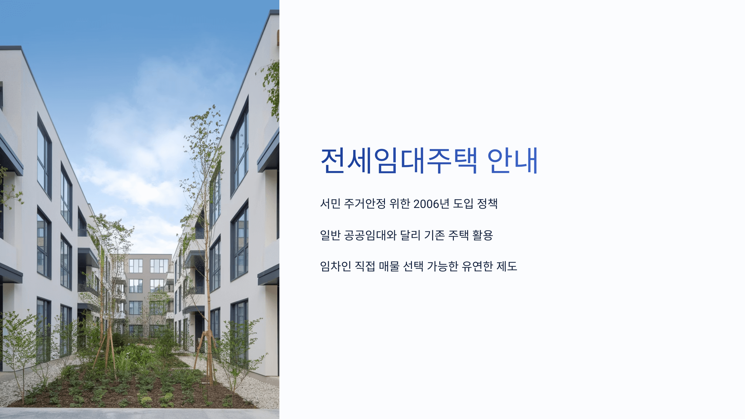 전세임대주택은 국가 또는 지방자치단체가 지원하는 주택 임대 프로그램 중 하나예요. 주로 저소득층, 청년, 신혼부부, 고령층 등을 대상으로 진행돼요. 전통적인 임대주택처럼 미리 지어진 집에 들어가는 방식이 아니라, 입주자가 직접 거주하고 싶은 집을 찾은 후에 정부가 대신 전세 계약을 체결하고, 입주자는 저렴한 임대료만 부담하는 시스템이에요.